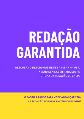 O que eu quero te dizer com isso? Existe um jeito mais fácil de tirar 900+ na redação do ENEM. Assim como eu, você também pode realizar o sonho de ser aprovado no vestibular! O que eu tenho de diferente? Nada! Vim de escola pública, não escrevia bem, não sabia como começar um texto, travava quando via o tema da redação, meus argumentos eram fracos, errava muito gramática, era preguiçosa, queria jogar tudo para cima (mesmo sem ter nada, rs) . Com esse método, testado e validado, a redação se tornou minha aliada. Parei de perder meu tempo com enrolação de cursinho caro e pude me dedicar mais à outras matérias, como matemática, e aumentar os meus acertos, pois eu não precisava mais me preocupar com a redação.
